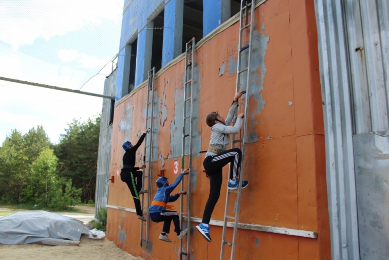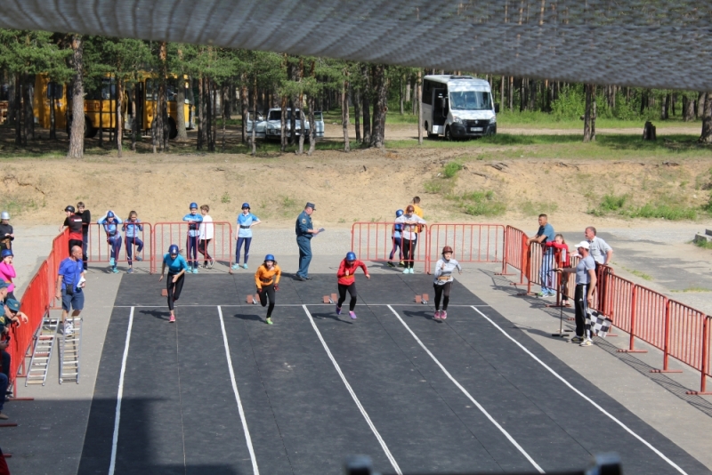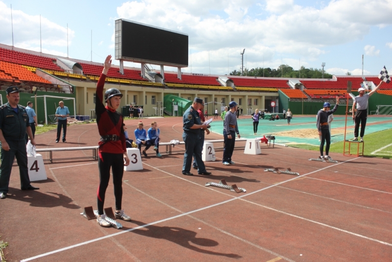 Затем участники состязались в преодолении стометровой полосы с препятствиями, пожарной эстафете, и, уже на стадионе «Прометей», – в подъёме по штурмовой лестнице в окна учебной башни.